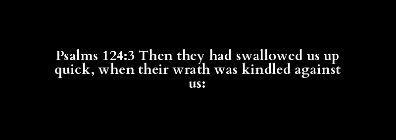 Psalms 124:3 Then they had swallowed us up quick, when their wrath was kindled against us:
