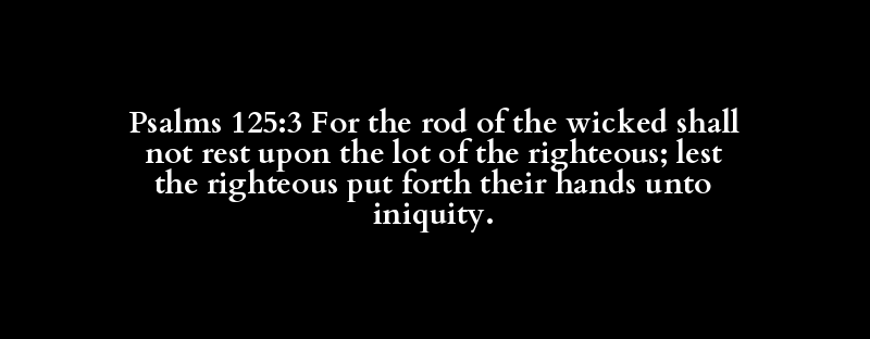 Psalms 125:3 For the rod of the wicked shall not rest upon the lot of the righteous; lest the righteous put forth their hands unto iniquity.