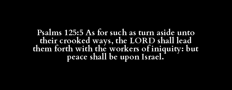 Psalms 125:5 As for such as turn aside unto their crooked ways, the LORD shall lead them forth with the workers of iniquity: but peace shall be upon Israel.