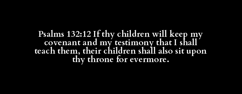 Psalms 132:12 If thy children will keep my covenant and my testimony that I shall teach them, their children shall also sit upon thy throne for evermore.