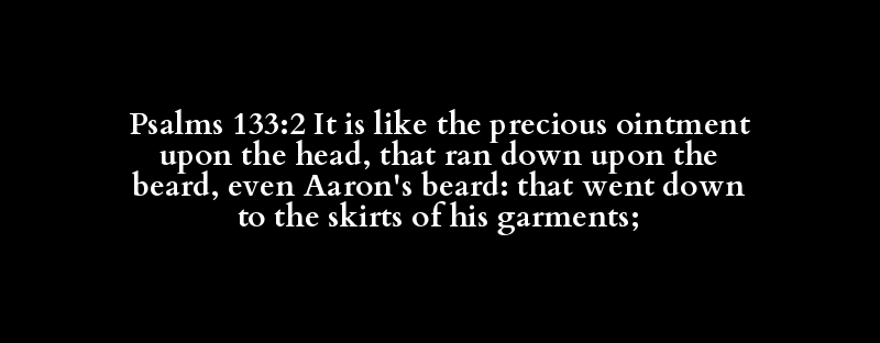 Psalms 133:2 It is like the precious ointment upon the head, that ran down upon the beard, even Aaron's beard: that went down to the skirts of his garments;