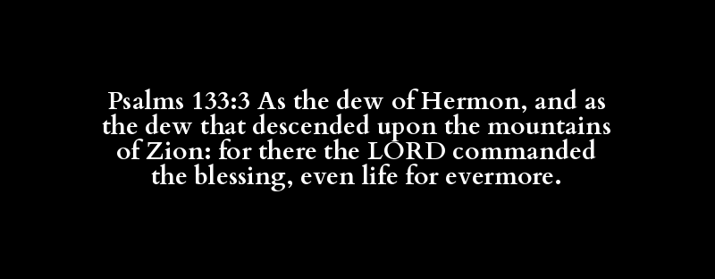 Psalms 133:3 As the dew of Hermon, and as the dew that descended upon the mountains of Zion: for there the LORD commanded the blessing, even life for evermore.