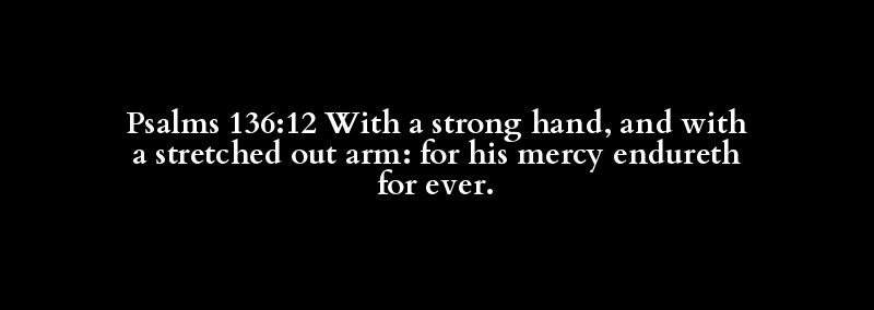 Psalms 136:12 With a strong hand, and with a stretched out arm: for his mercy endureth for ever.