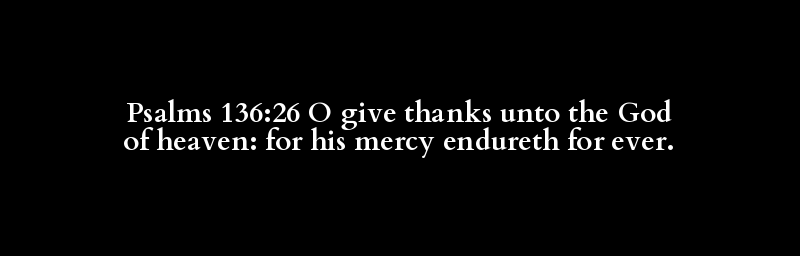 Psalms 136:26 O give thanks unto the God of heaven: for his mercy endureth for ever.