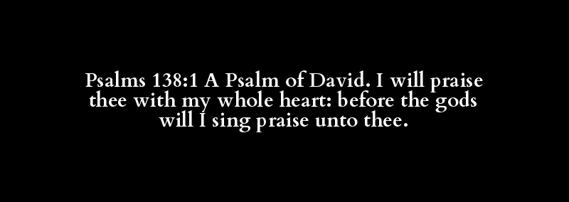 Psalms 138:1 A Psalm of David. I will praise thee with my whole heart: before the gods will I sing praise unto thee.