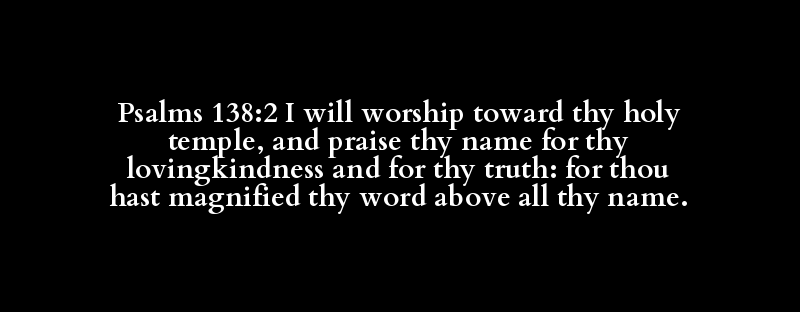 Psalms 138:2 I will worship toward thy holy temple, and praise thy name for thy lovingkindness and for thy truth: for thou hast magnified thy word above all thy name.