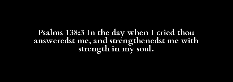 Psalms 138:3 In the day when I cried thou answeredst me, and strengthenedst me with strength in my soul.