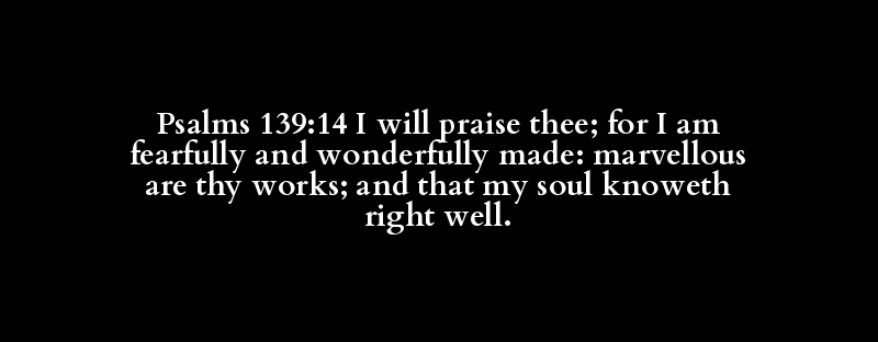 Psalms 139:14 I will praise thee; for I am fearfully and wonderfully made: marvellous are thy works; and that my soul knoweth right well.