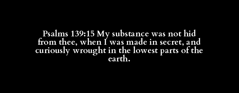 Psalms 139:15 My substance was not hid from thee, when I was made in secret, and curiously wrought in the lowest parts of the earth.