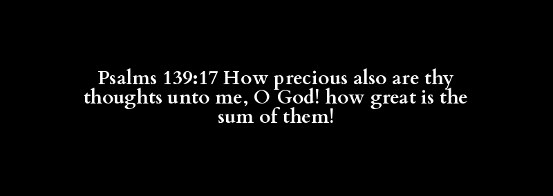 Psalms 139:17 How precious also are thy thoughts unto me, O God! how great is the sum of them!