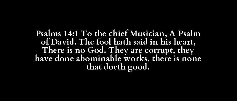 Psalms 14:1 To the chief Musician, A Psalm of David. The fool hath said in his heart, There is no God. They are corrupt, they have done abominable works, there is none that doeth good.
