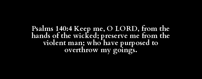 Psalms 140:4 Keep me, O LORD, from the hands of the wicked; preserve me from the violent man; who have purposed to overthrow my goings.