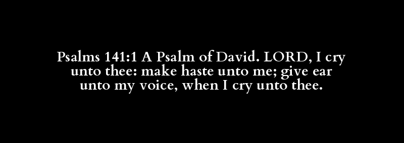 Psalms 141:1 A Psalm of David. LORD, I cry unto thee: make haste unto me; give ear unto my voice, when I cry unto thee.