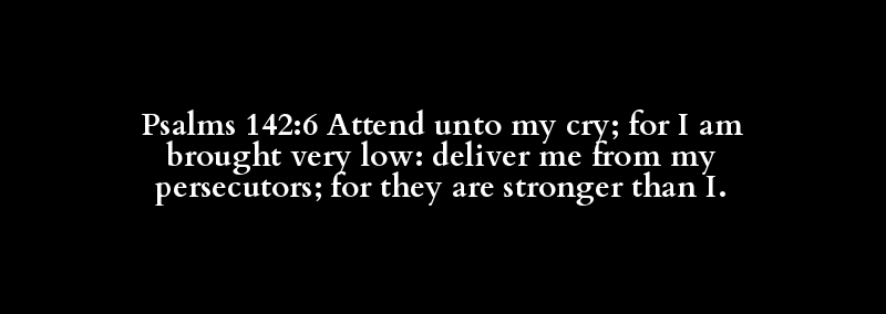 Psalms 142:6 Attend unto my cry; for I am brought very low: deliver me from my persecutors; for they are stronger than I.