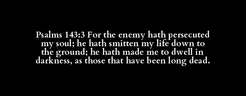 Psalms 143:3 For the enemy hath persecuted my soul; he hath smitten my life down to the ground; he hath made me to dwell in darkness, as those that have been long dead.