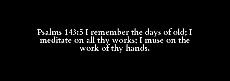 Psalms 143:5 I remember the days of old; I meditate on all thy works; I muse on the work of thy hands.