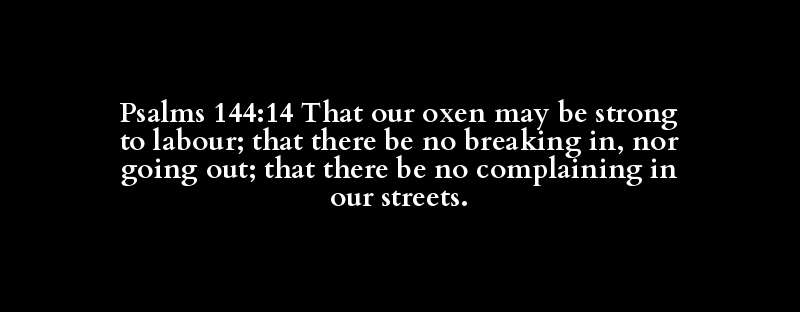 Psalms 144:14 That our oxen may be strong to labour; that there be no breaking in, nor going out; that there be no complaining in our streets.