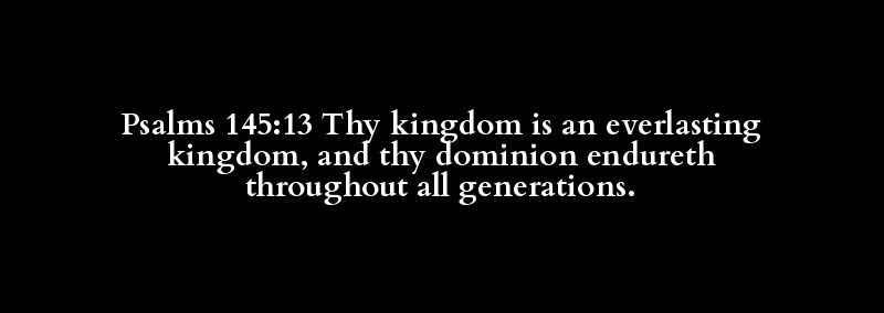Psalms 145:13 Thy kingdom is an everlasting kingdom, and thy dominion endureth throughout all generations.