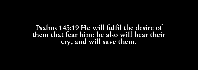 Psalms 145:19 He will fulfil the desire of them that fear him: he also will hear their cry, and will save them.