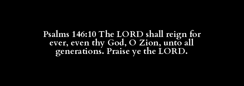 Psalms 146:10 The LORD shall reign for ever, even thy God, O Zion, unto all generations. Praise ye the LORD.