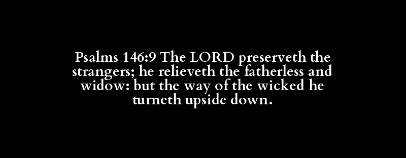 Psalms 146:9 The LORD preserveth the strangers; he relieveth the fatherless and widow: but the way of the wicked he turneth upside down.