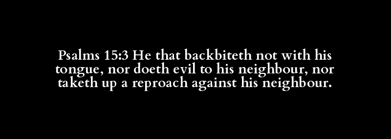 Psalms 15:3 He that backbiteth not with his tongue, nor doeth evil to his neighbour, nor taketh up a reproach against his neighbour.