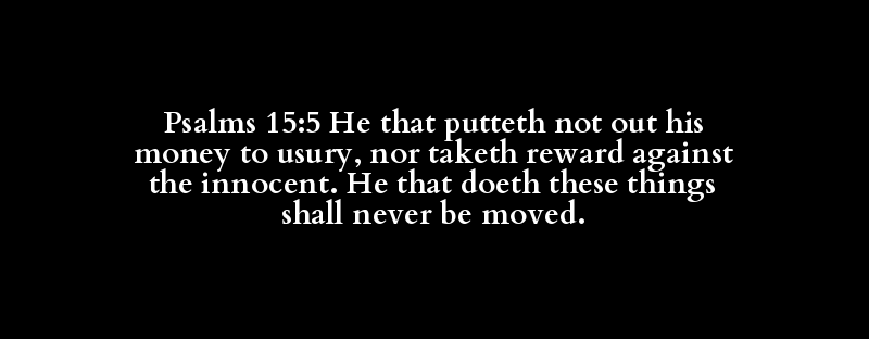 Psalms 15:5 He that putteth not out his money to usury, nor taketh reward against the innocent. He that doeth these things shall never be moved.