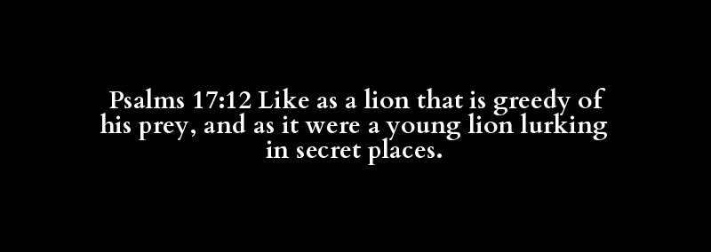 Psalms 17:12 Like as a lion that is greedy of his prey, and as it were a young lion lurking in secret places.