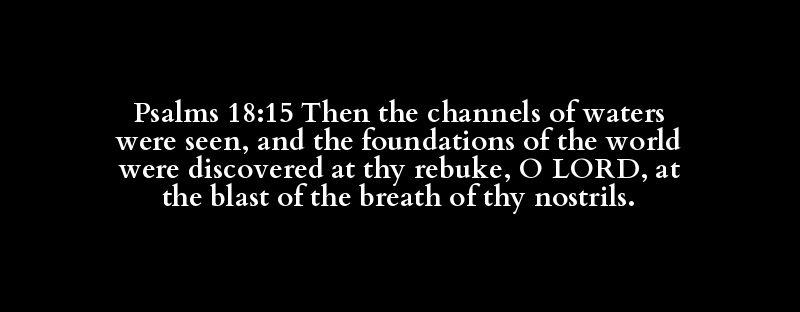 Psalms 18:15 Then the channels of waters were seen, and the foundations of the world were discovered at thy rebuke, O LORD, at the blast of the breath of thy nostrils.