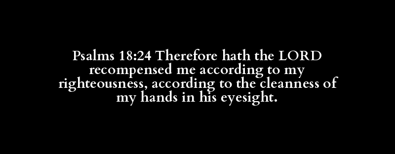 Psalms 18:24 Therefore hath the LORD recompensed me according to my righteousness, according to the cleanness of my hands in his eyesight.