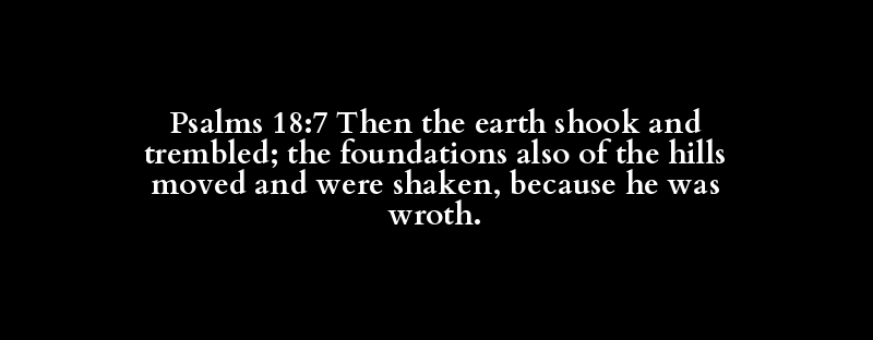 Psalms 18:7 Then the earth shook and trembled; the foundations also of the hills moved and were shaken, because he was wroth.