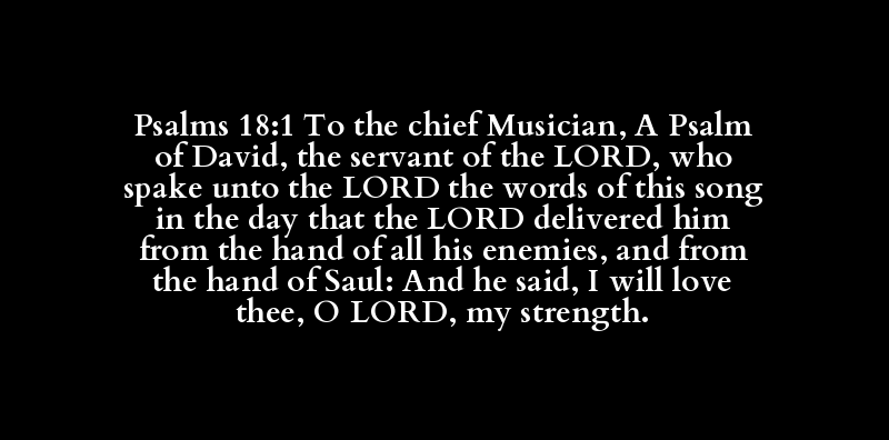 Psalms 18:1 To the chief Musician, A Psalm of David, the servant of the LORD, who spake unto the LORD the words of this song in the day that the LORD delivered him from the hand of all his enemies, and from the hand of Saul: And he said, I will love thee, O LORD, my strength.