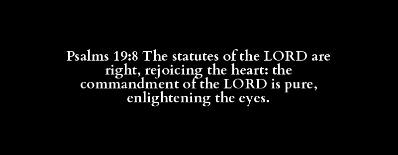 Psalms 19:8 The statutes of the LORD are right, rejoicing the heart: the commandment of the LORD is pure, enlightening the eyes.