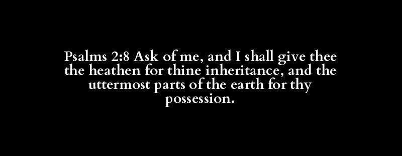 Psalms 2:8 Ask of me, and I shall give thee the heathen for thine inheritance, and the uttermost parts of the earth for thy possession.