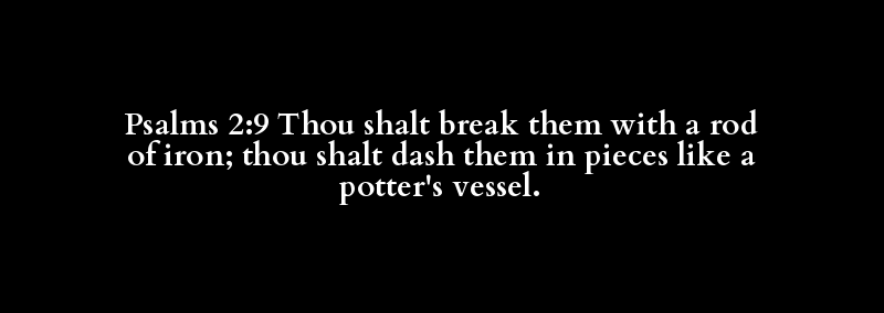Psalms 2:9 Thou shalt break them with a rod of iron; thou shalt dash them in pieces like a potter's vessel.