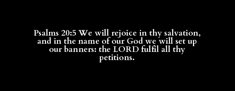 Psalms 20:5 We will rejoice in thy salvation, and in the name of our God we will set up our banners: the LORD fulfil all thy petitions.