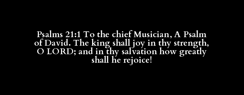 Psalms 21:1 To the chief Musician, A Psalm of David. The king shall joy in thy strength, O LORD; and in thy salvation how greatly shall he rejoice!