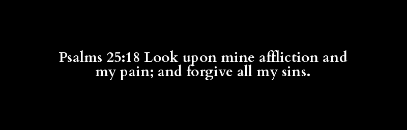 Psalms 25:18 Look upon mine affliction and my pain; and forgive all my sins.