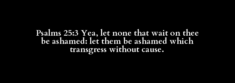 Psalms 25:3 Yea, let none that wait on thee be ashamed: let them be ashamed which transgress without cause.