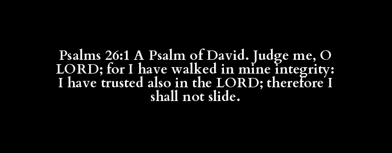 Psalms 26:1 A Psalm of David. Judge me, O LORD; for I have walked in mine integrity: I have trusted also in the LORD; therefore I shall not slide.