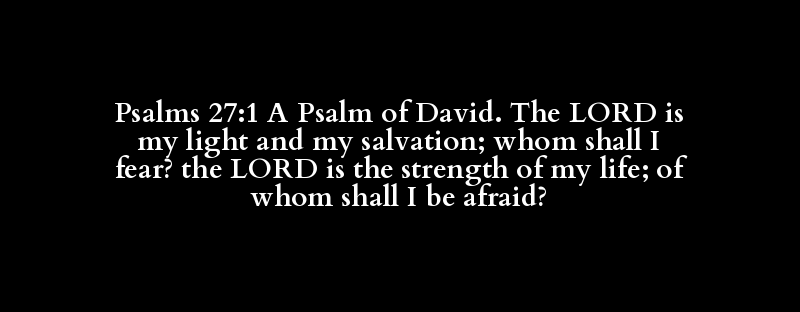 Psalms 27:1 A Psalm of David. The LORD is my light and my salvation; whom shall I fear? the LORD is the strength of my life; of whom shall I be afraid?