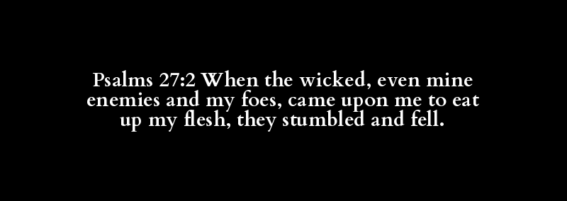 Psalms 27:2 When the wicked, even mine enemies and my foes, came upon me to eat up my flesh, they stumbled and fell.