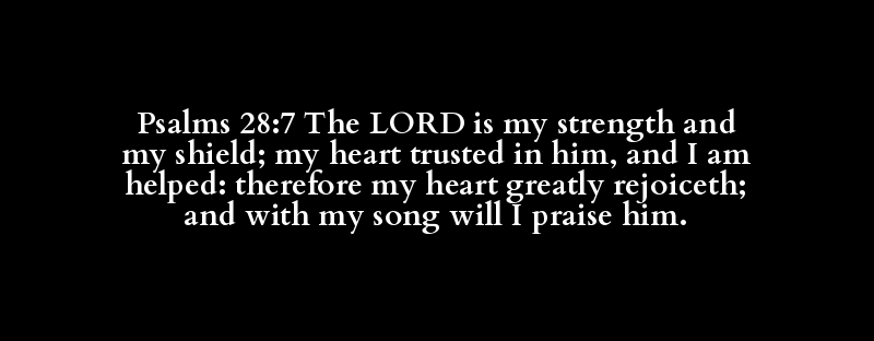 Psalms 28:7 The LORD is my strength and my shield; my heart trusted in him, and I am helped: therefore my heart greatly rejoiceth; and with my song will I praise him.