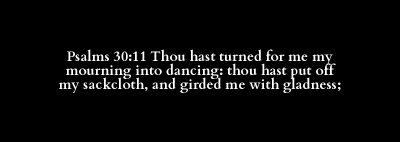 Psalms 30:11 Thou hast turned for me my mourning into dancing: thou hast put off my sackcloth, and girded me with gladness;