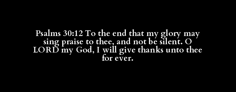 Psalms 30:12 To the end that my glory may sing praise to thee, and not be silent. O LORD my God, I will give thanks unto thee for ever.