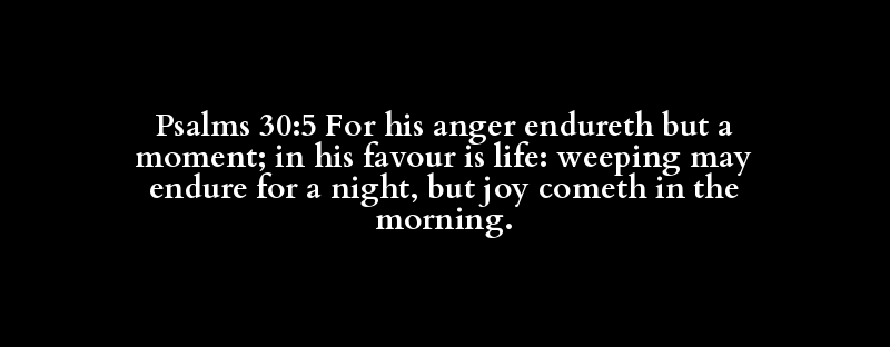 Psalms 30:5 For his anger endureth but a moment; in his favour is life: weeping may endure for a night, but joy cometh in the morning.