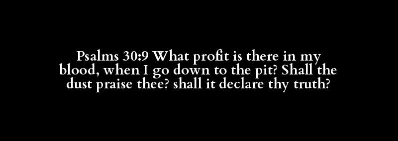 Psalms 30:9 What profit is there in my blood, when I go down to the pit? Shall the dust praise thee? shall it declare thy truth?
