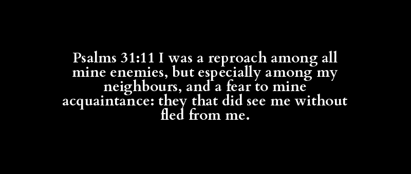 Psalms 31:11 I was a reproach among all mine enemies, but especially among my neighbours, and a fear to mine acquaintance: they that did see me without fled from me.
