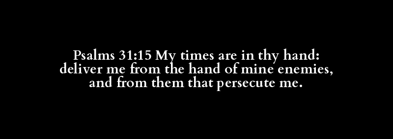 Psalms 31:15 My times are in thy hand: deliver me from the hand of mine enemies, and from them that persecute me.