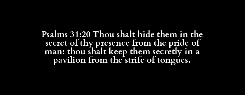 Psalms 31:20 Thou shalt hide them in the secret of thy presence from the pride of man: thou shalt keep them secretly in a pavilion from the strife of tongues.